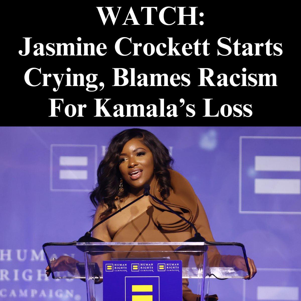 Speaking at the Human Rights Campaign’s annual gala, Crockett claimed that the “person that should have been president” did not win last November because of racism.