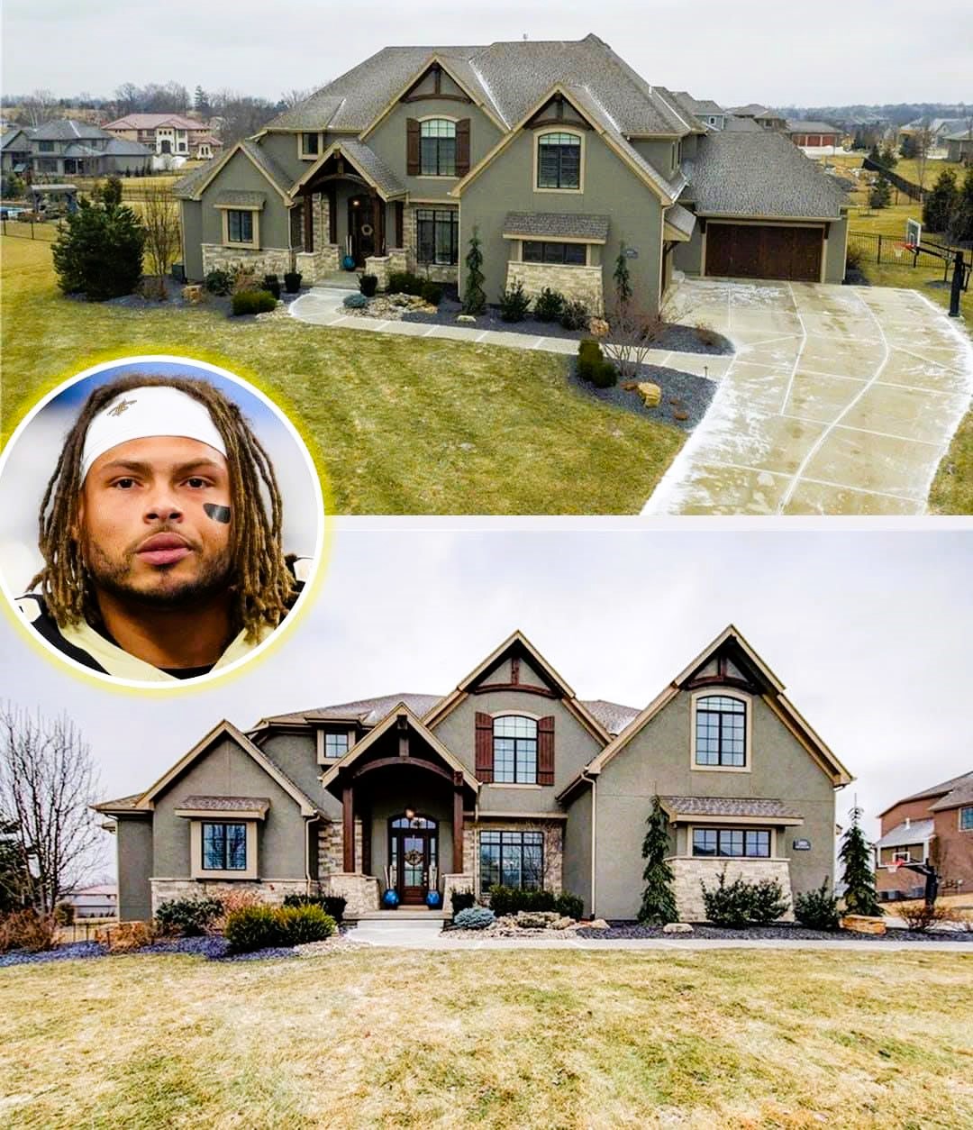 Tyrann Mathieu, the talented New Orleans Saints safety, has secured a beautiful and luxurious residence in Overland Park, Kansas. This sprawling estate, estimated at $1,776,350, offers an impressive 6,064 square feet of living space and sits on a 1.05-acre lot within the highly sought-after Farm at Garnet Hill. This property combines elegance, comfort, and state-of-the-art amenities, making it the perfect retreat for an NFL superstar.