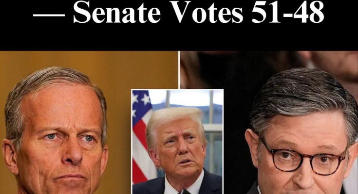 The resolution passed 51 to 48, with Republican Senators Rand Paul of Kentucky and Susan Collins of Maine joining Senate Democrats in opposing the measure. The blueprint was approved at around 2:30 a.m. after a marathon “vote-a-rama” session, during which Senate Democrats compelled their Republican colleagues to vote on a series of politically charged amendments related to entitlement spending, government efficiency measures, and Trump’s tariffs.