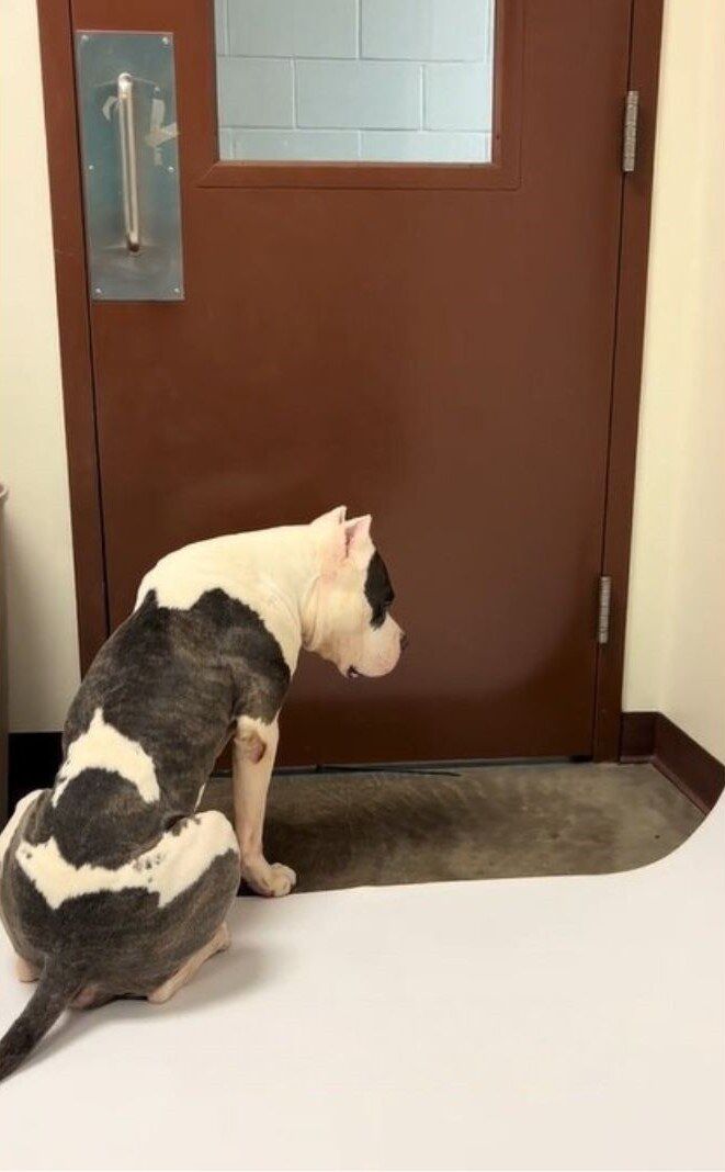 A senior pit bull named Rocky spent his days sitting by his kennel door, hoping someone would notice him. “Rocky sits by the door every day waiting for someone to ask to meet him…but no one ever does,” his rescuers said.