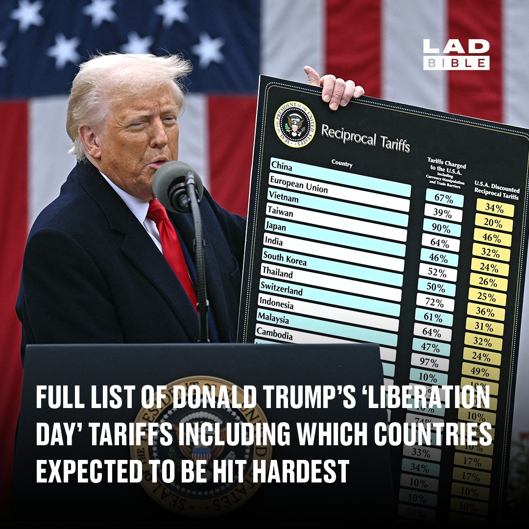 Full list of Donald Trump’s ‘Liberation Day’ tariffs including which countries expected to be hit hardest