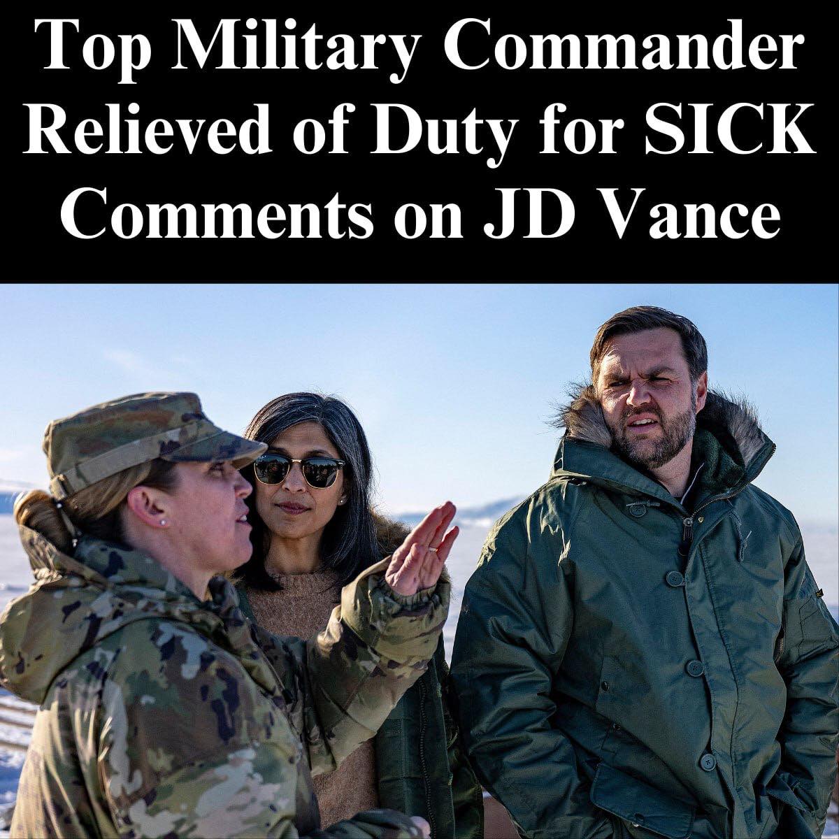 The commander of a Space Force base in Greenland has been dismissed of her responsibilities following remarks regarding Vice President J.D. Vance.