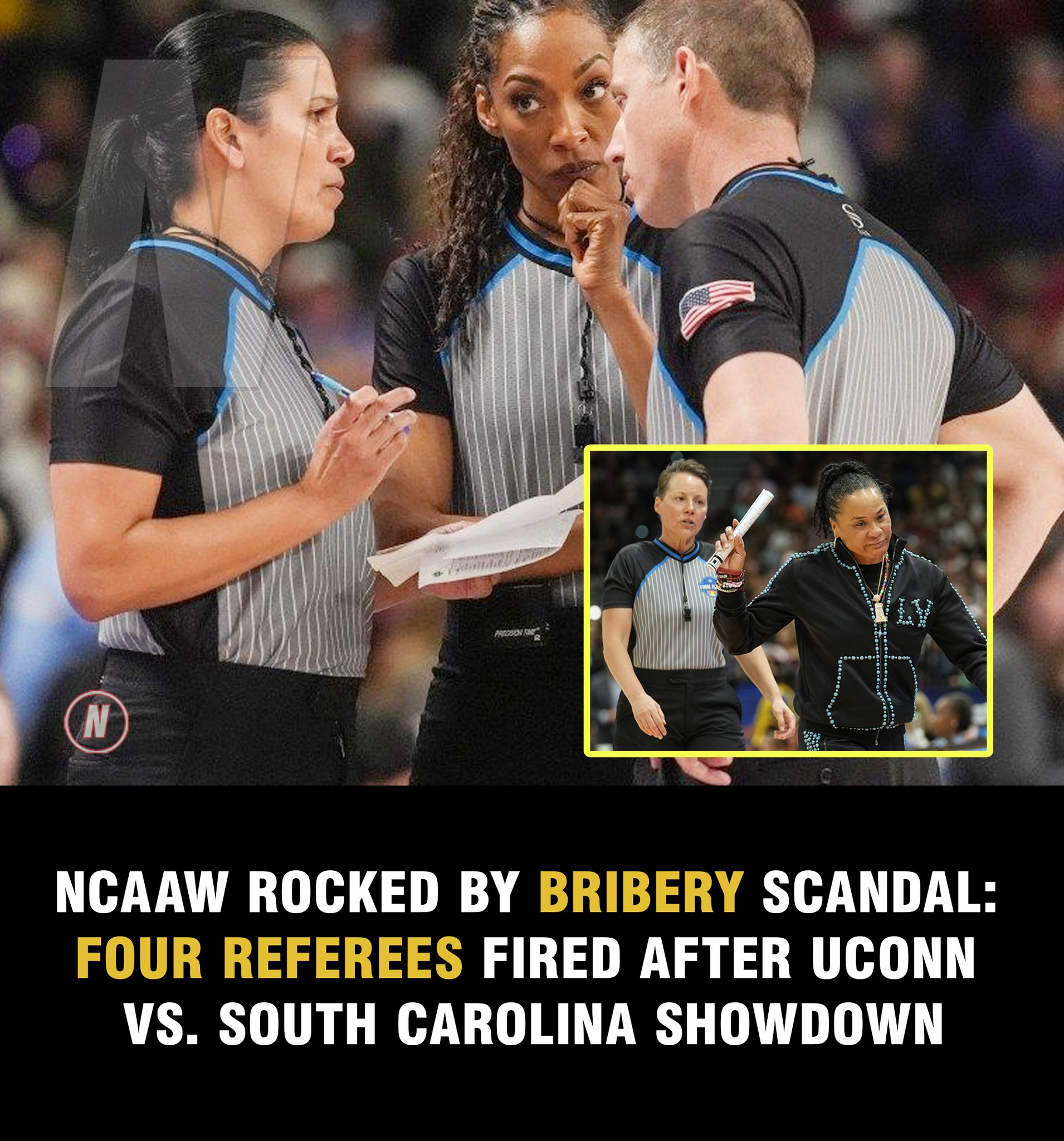 the NCAA Women’s Division (NCAAW) has fired four referees who officiated the high-profile game between the University of Connecticut Huskies (UConn) and the South Carolina Gamecocks, following their alleged involvement in what investigators are calling “the largest bribery scandal in NCAAW history.”