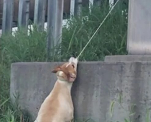 In this case not only was a dog tied up and abandoned but it was tied so tight it was being strangled.