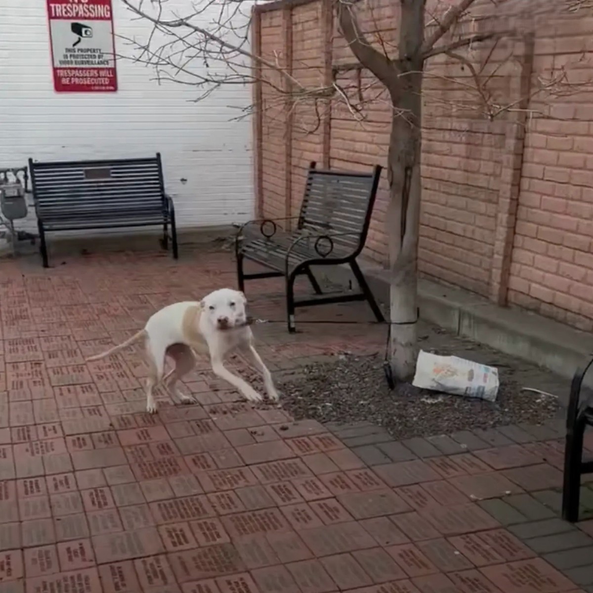 While walking along the sidewalk outside of SRSL, lined with memorial bricks and benches for visitors, staff found a four-legged friend tethered to a tree.
