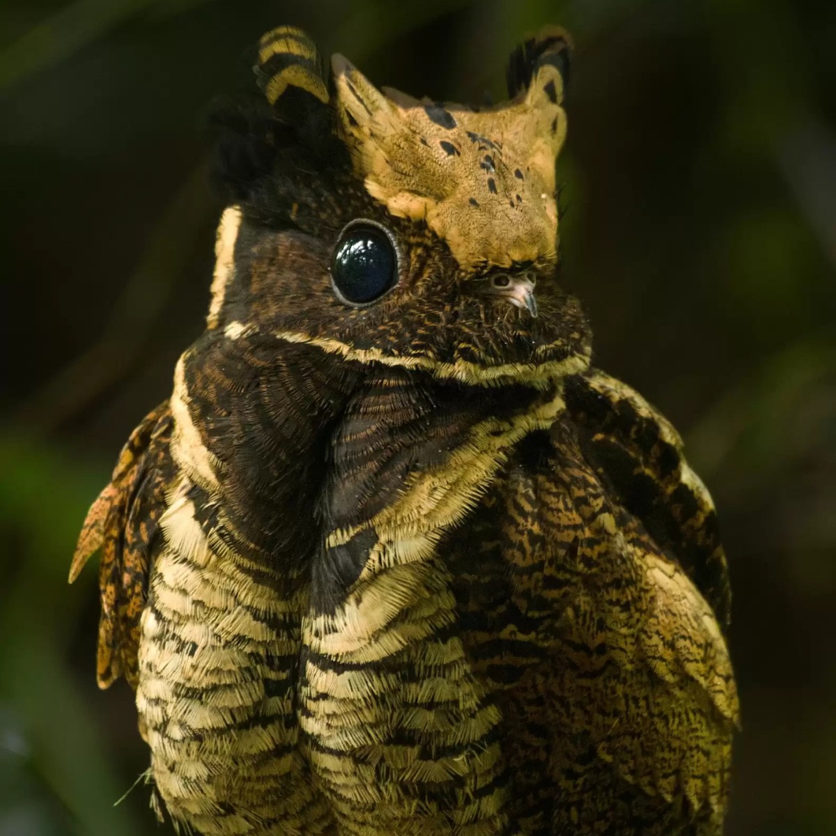 Great eared nightjars are found in the tropical forests of Southeast Asia, and they’re nocturnal, so they roam the forests under the cover of darkness. Besides the way they look, something unique about them is that they make their nests on the forest floor, and their babies are well-camouflaged by all of the leaves.