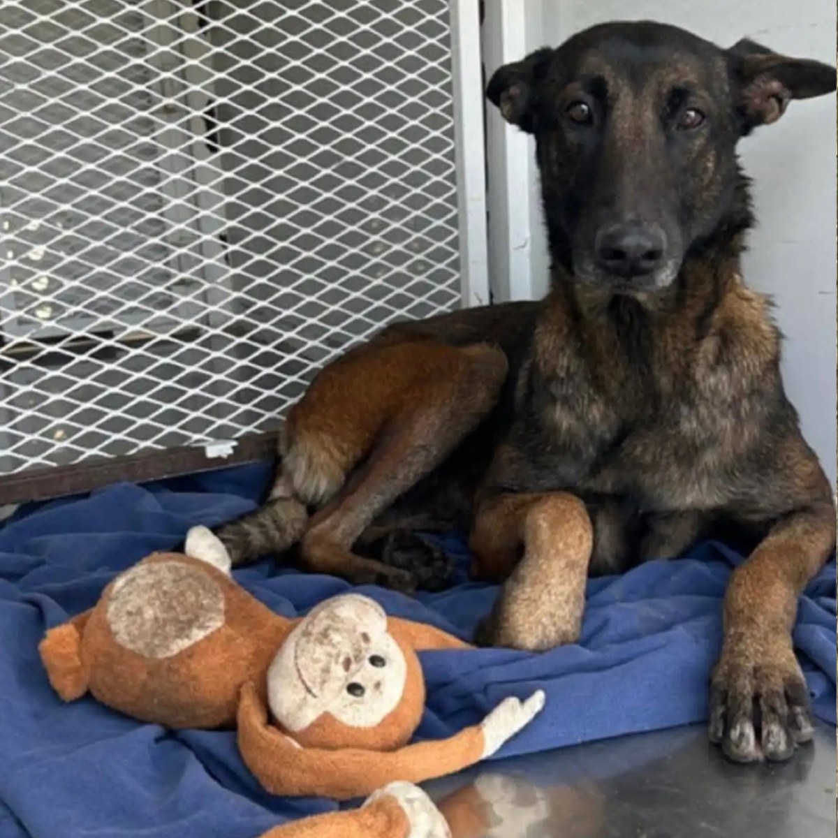One day at a park in Bakersfield, California, a sweet dog was pushed out of a car and abandoned. Before her family drove away, leaving her behind, they tossed her her favorite stuffed monkey out with her. Passersby watched it happen, heartbroken for the sweet dog and her stuffed companion.