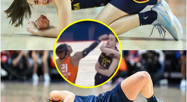 Caitlin Clark was engaged in a tight battle for a rebound with DiJonai Carrington of the Connecticut Sun. As they fought for position under the basket, Carrington suddenly made a quick, seemingly accidental motion. A stray hand moved toward Caitlin’s face, and the next thing anyone saw was Caitlin stumbling backward, clutching her face. The crowd gasped as Caitlin fell to the floor, holding her eye in visible pain. It was unclear at first whether it had been an intentional strike, but one thing was certain—the play would forever be etched in WNBA history.