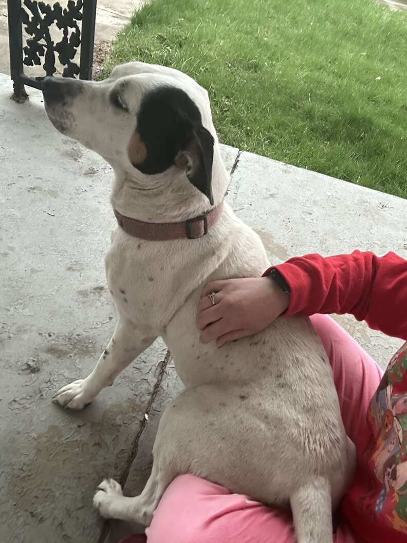 “She is a very sweet dog,” Bullock said. “She would cry and just try to sit on my lap while I sat on the porch with her.”