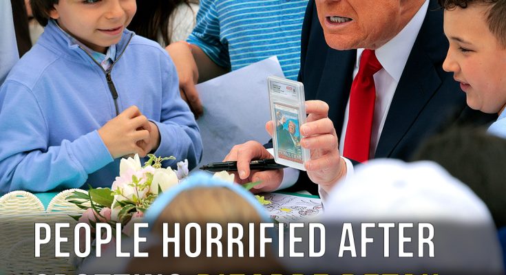 The 78-year-old, now in his second term and known for his unfiltered approach, greeted children with smiles. Yet at one point, he revealed a trading card to a group of kids. The card, however, wasn’t a playful illustration or a collectible featuring patriotic themes. Instead, it bore an image from July 13, 2023 — the day an assassination attempt nearly took his life.