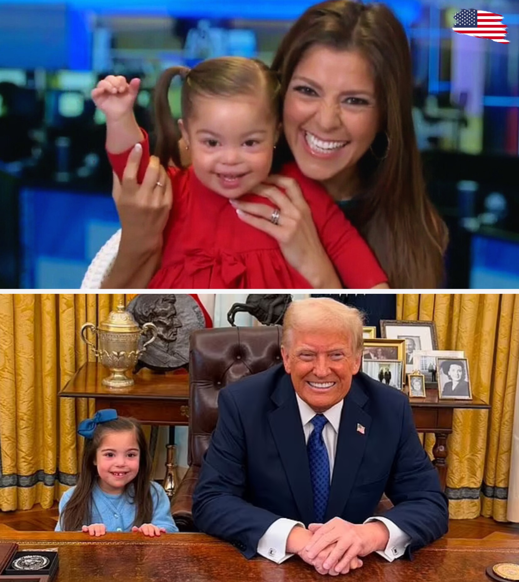 The five-year-old, who has Down Syndrome, stole hearts as she posed in a blue dress and bow next to President Donald Trump at the Resolute Desk in the Oval Office. The scene was equal parts historic and adorable.