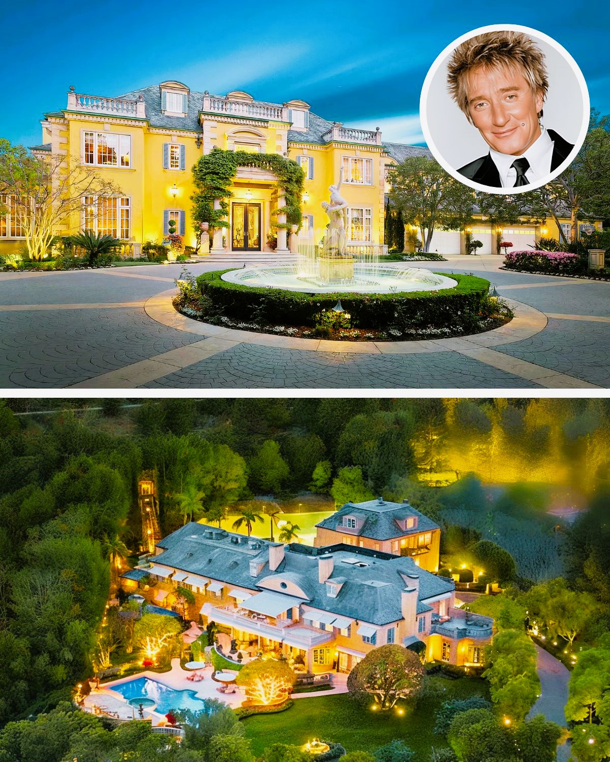 Nestled in the exclusive enclave of Beverly Park, Rod Stewart’s opulent manor stands as a testament to luxury and grandeur. This $74 million estate, sprawling over acres of prime Los Angeles real estate, is a haven for both elegance and entertainment, uniquely featuring its very own soccer field.
