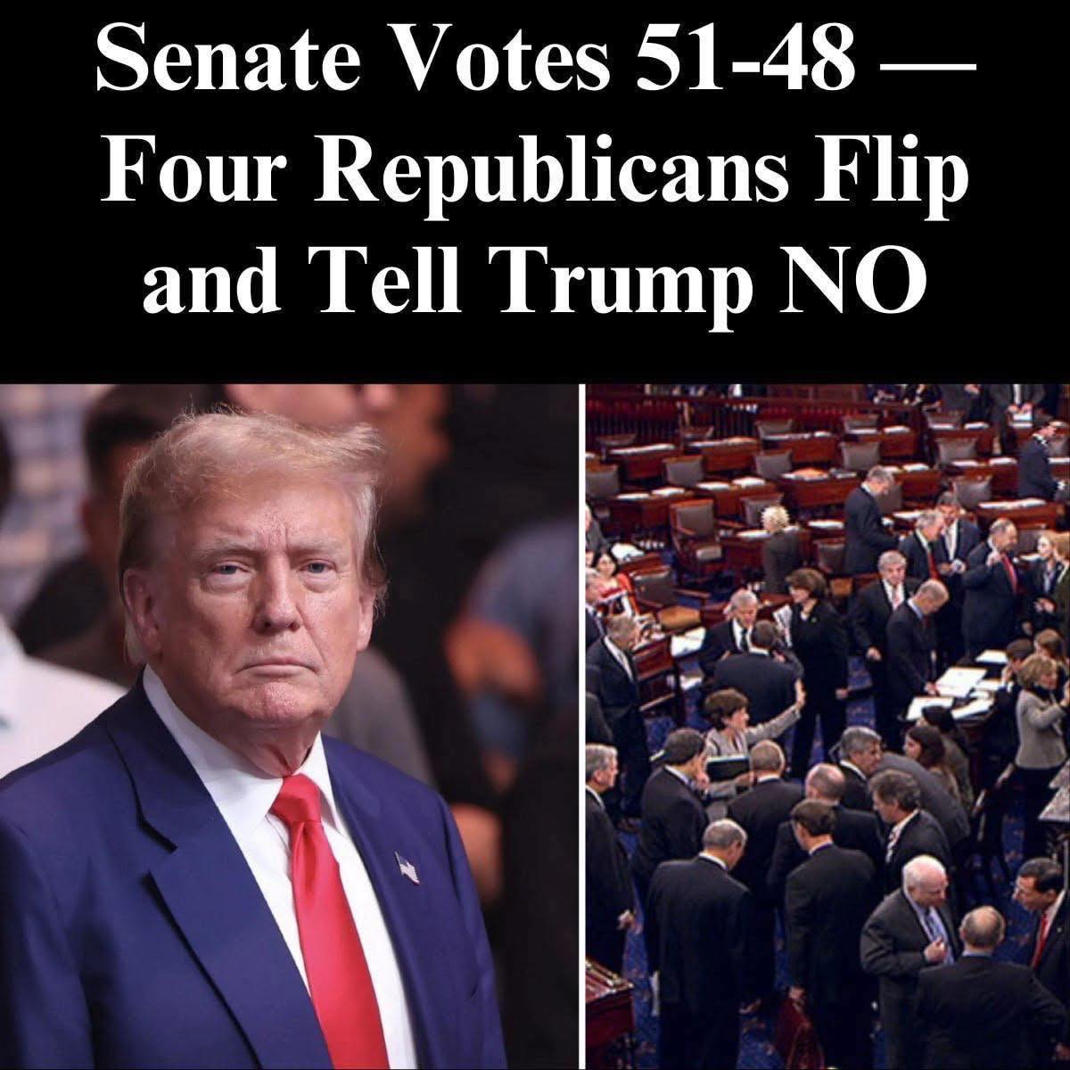 The Senate passed a resolution by a vote of 51 to 48, aimed at blocking the Trump administration’s proposed tariffs on Canadian imports. The four Republicans who voted with Democrats were Sens. Rand Paul, who cosponsored the resolution, Susan Collins, Mitch McConnell, and Lisa Murkowski, CNN noted.