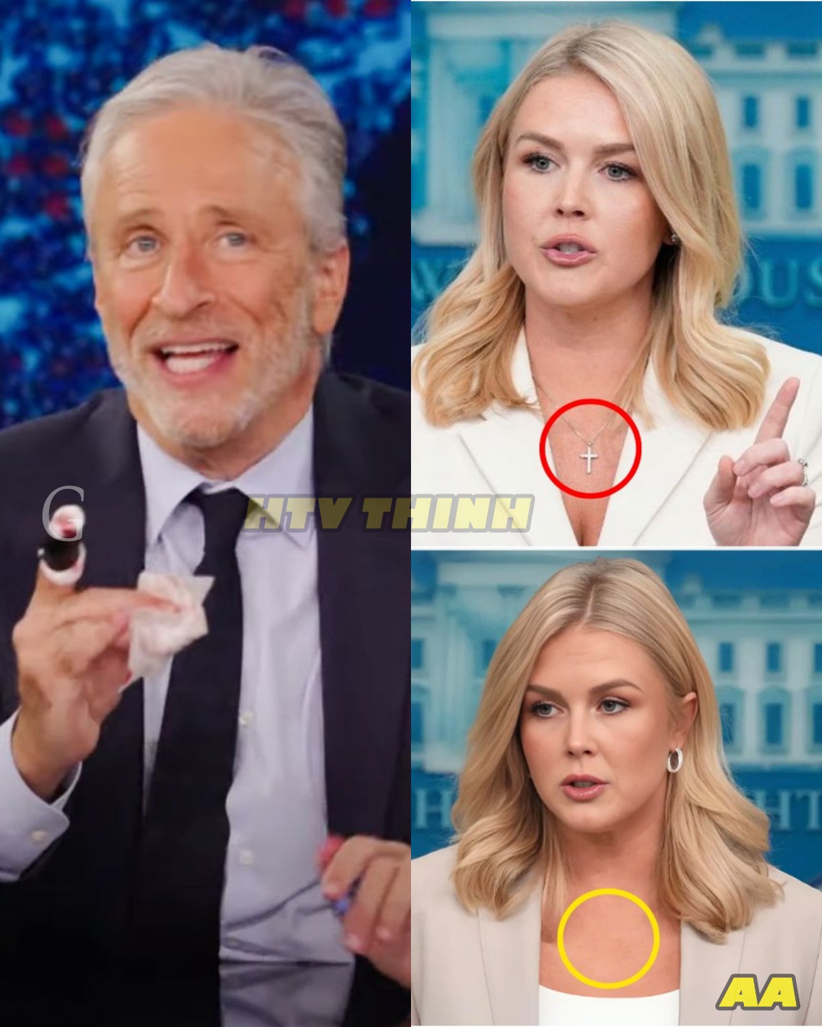 Jon Stewart didn’t just joke about Karoline Leavitt’s infamous cross necklace on national television. He dismantled the image it stood for—and, with the precision only a master satirist like Stewart possesses, made the necklace disappear from public view less than 24 hours later.