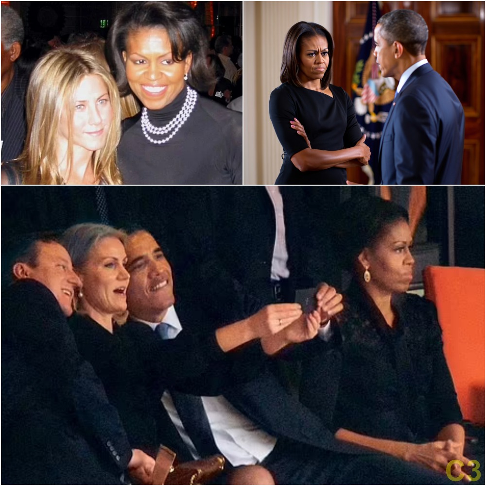 Indeed, Michelle’s no-show from both events comes as a wild flurry of speculation in Hollywood and DC of a blockbuster affair between the charismatic former commander-in-chief and Friends star Jennifer Aniston.