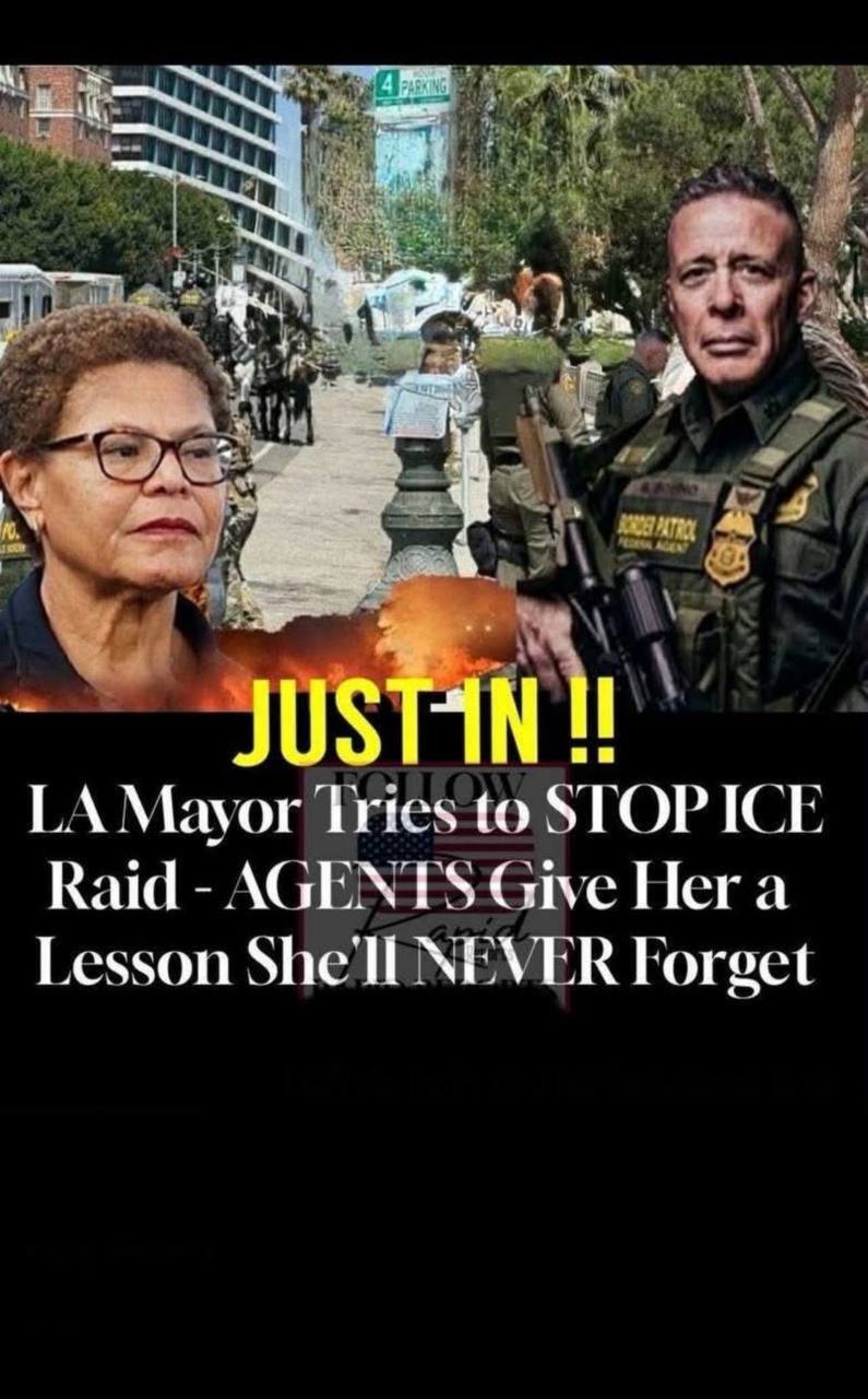 “Mayor Bass has demanded raids stop, Feds respond with one of the largest yet, including Border Patrol agents on horseback. Protesters already showing up,” he added.