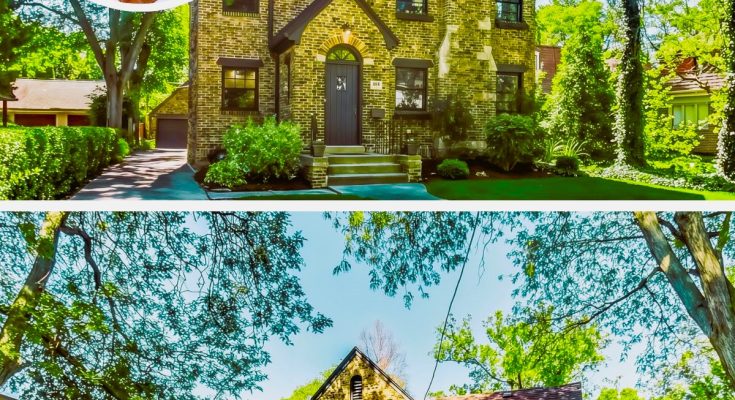 This Vintage Tudor house boasts a striking exterior with its classic brick facade and original balcony.