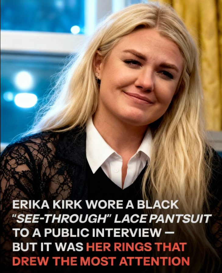 When Erika Kirk appeared onstage for her interview with Megyn Kelly in Glendale, Arizona, the evening was meant to center on reflection, strength, and the many challenges she has faced in recent years. But as the conversation unfolded, another detail captured widespread attention online: her unexpected fashion choice. While Kelly opted for a classic white pantsuit with understated elegance, Kirk arrived in a bold black ensemble featuring lace details and sheer elements that contrasted sharply with the host’s traditional style. The outfit—modern, dramatic, and deeply expressive—quickly became the focal point of social media discussions, drawing admiration from some and puzzled reactions from others. Within hours, images from the interview were being shared across platforms, sparking a lively debate about what one should or should not wear during an emotionally significant conversation.