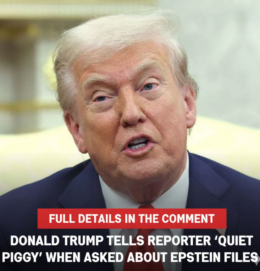 High above the patchwork quilt of America’s heartland, where amber fields gave way to the glittering sprawl of the Eastern Seaboard on November 14, 2025, Air Force One cut through the clouds like a steel resolve wrapped in blue. Inside the presidential cabin, the air hummed with the low thrum of jet engines and the sharper rhythm of a press gaggle in full swing—a ritual as tense as a high-stakes poker hand, where every question was a bet and every answer a reveal. President Donald J. Trump, fresh from a morning of Oval Office strategy sessions on border security and economic surges, leaned back in his leather seat, his red tie a bold streak against the crisp navy of his suit. The reporters, a mix of familiar faces from Bloomberg, CBS, and beyond, fired off queries on everything from tariff tweaks to midterm maneuvers. But when Catherine Lucey, the sharp-eyed Bloomberg correspondent with a notebook clutched like a shield, zeroed in on the Epstein files—”Mr. President, if there’s nothing incriminating in the files, why not act?”—the atmosphere shifted. Trump’s blue eyes locked on her, his finger jabbing the air like a conductor’s baton, and out came the retort that would ricochet across screens and supper tables nationwide: “Quiet, quiet, piggy.” It wasn’t a whisper or a wave-off; it was pure Trump—raw, reflexive, a verbal haymaker that left Lucey mid-sentence and the cabin in stunned silence, the moment captured on video and destined to ignite a firestorm of debate, defense, and deeper dives into the shadows of power.