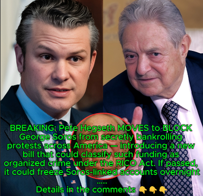 Within minutes, social media exploded into chaos as news broke: Pete Hegseth had just introduced one of the most aggressive, sweeping bills of the decade – a direct move to block George Soros from secretly bankrolling protests across the United States.