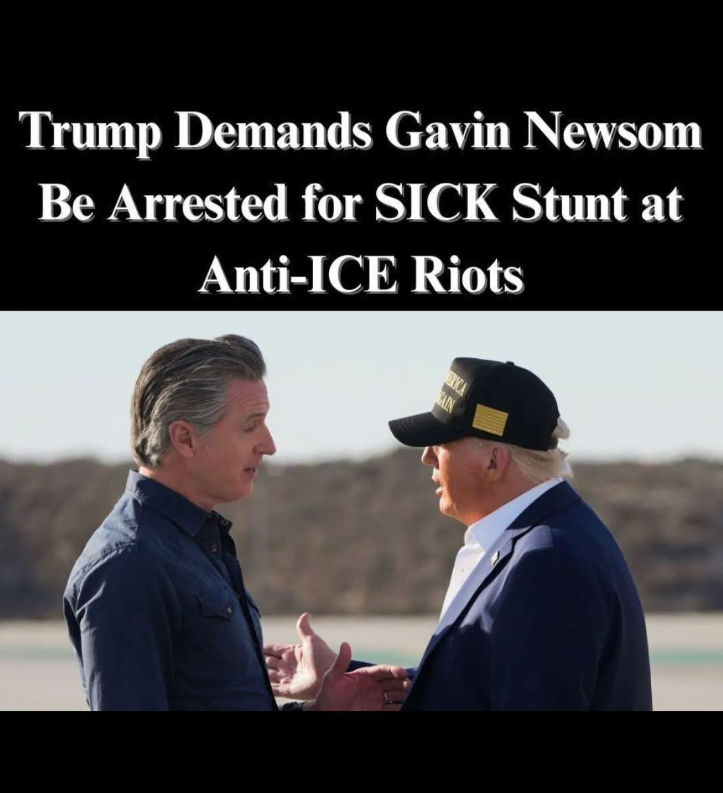 President Donald Trump ignited a political firestorm Monday after suggesting that California Governor Gavin Newsom should be arrested amid escalating anti-ICE riots in Los Angeles — a remark that underscores just how badly the situation in America’s largest blue-state cities has deteriorated.