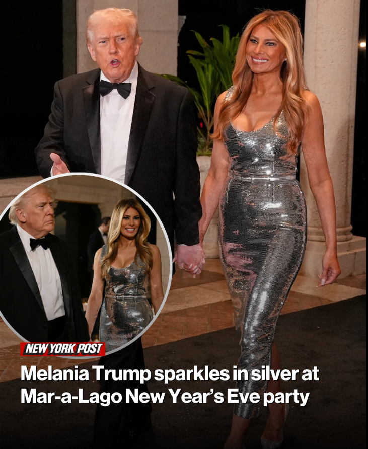 Melania Trump rang in the new year alongside husband Donald at a glitzy Mar-a-Lago party Wednesday night, dressed in a silver sequined gown ($1,450) by The New Arrivals.
