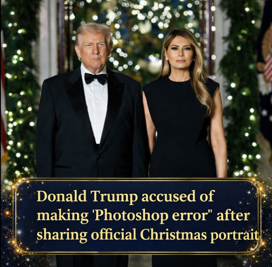 Donald and Melania Trump’s official Christmas portrait has been released, sparking online discussion after some viewers claimed they noticed a possible Photoshop edit. As is tradition, the White House shared a festive photograph of the president and first lady surrounded by holiday décor. In this year’s image, 79-year-old Donald Trump and 55-year-old Melania stand hand-in-hand inside the presidential residence, framed by Christmas trees, American flags, and the presidential seal.