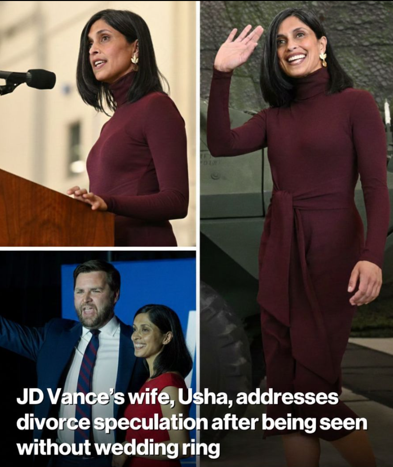 Her response came not in a tearful tell-all or fiery tweet, but in the measured might of a statement from spokesperson Taylor Van Kirk, a rarity for a woman who lets actions speak louder than pressers. Issued late on November 22, 2025, to the New York Post, it cut through the chatter with the precision of a Yale Law grad: “Usha is happily married to JD and their family is thriving. She wasn’t wearing her wedding ring because it was being resized.” Simple, steadfast, it quelled the storm without fueling it further, a masterstroke that echoed Usha’s long game—deflect with dignity, endure with elegance. Van Kirk, a veteran of Vance’s Senate staff with a knack for navigating media minefields, added a touch of levity: “Anyone who’s ever lost a ring to a toddler knows the drill.” The clarification landed like a cool compress on fevered brows, with allies from Sen. Marco Rubio to podcaster Joe Rogan chiming in with supportive nods: “Fake news strikes again—Vances forever.” Yet, in quieter corners, the episode underscores the poignant pressures of political matrimony, where a forgotten accessory becomes fodder for Freudian analysis, and love’s private proofs are parsed like policy papers.