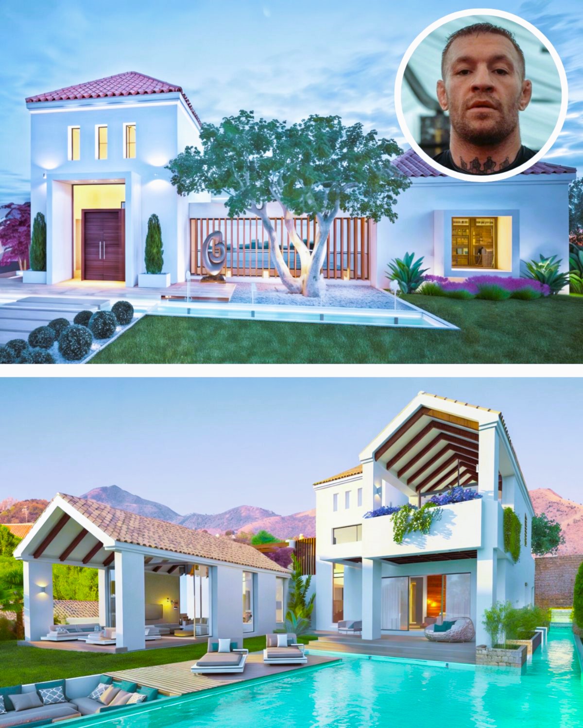Conor McGregor’s $1.6 million villa in Marbella boasts a customized gym, an outdoor pool, and an LED-lit driveway.