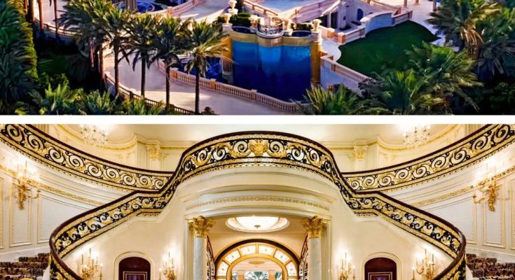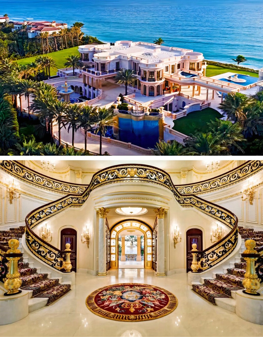 This sprawling estate encompasses 60,000 square feet of living space, complete with 11 bedrooms and 25 bathrooms.